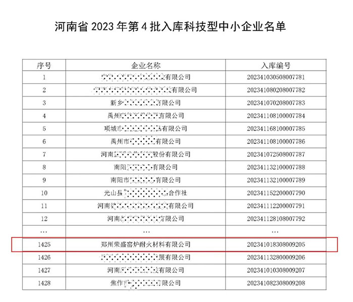 近日,根據(jù)科技部、財(cái)政部、稅務(wù)總局《科技型中小企業(yè)評(píng)價(jià)辦法》和《科技型中小企業(yè)評(píng)價(jià)服務(wù)工作指引》的有關(guān)規(guī)定,經(jīng)評(píng)估機(jī)構(gòu)的嚴(yán)格審核,鄭州榮盛窯爐耐火材料有限公司成功入庫“科技型中小企業(yè)”。這是榮盛耐材在自主創(chuàng)新、自主研發(fā)的進(jìn)程中取得的又一豐碩成果。